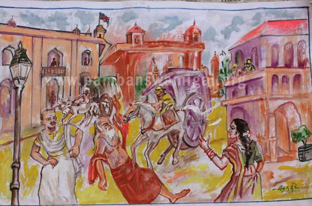 sreemath paamban suvaamihal ki.bi. 1923aam aandu disambar maadham 27n thaedhi pahal vaelaiyil sennaith thambu setti veedhiyil nadandhu poahum poadhu, oru kudhirai vandiyin sakkaram onru idakkanaikkaal mael yearik kaalil ulla yelumbu murindhu vittadhu. suvaamihalaik kanneeril kandavargal silar sennaiyil ulla arasaanga podhu maruththuva manaiyil saerththanar.